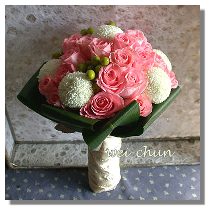 花材:乒乒菊+玫瑰+葉材