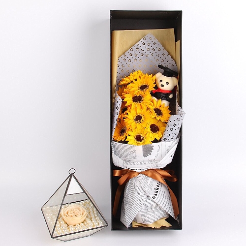 Z001 有夢最美 畢業熊向日葵香皂花束 (來店自取)