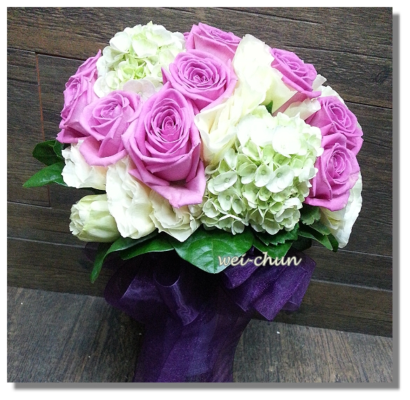 花材 : 紫天王玫瑰,綠繡球,白桔梗