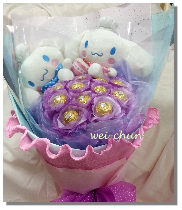 花材:玩偶大耳狗2隻,巧克力11隻