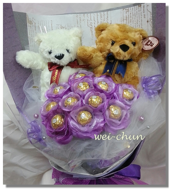 花材 : 小熊玩偶2隻,巧克力11隻