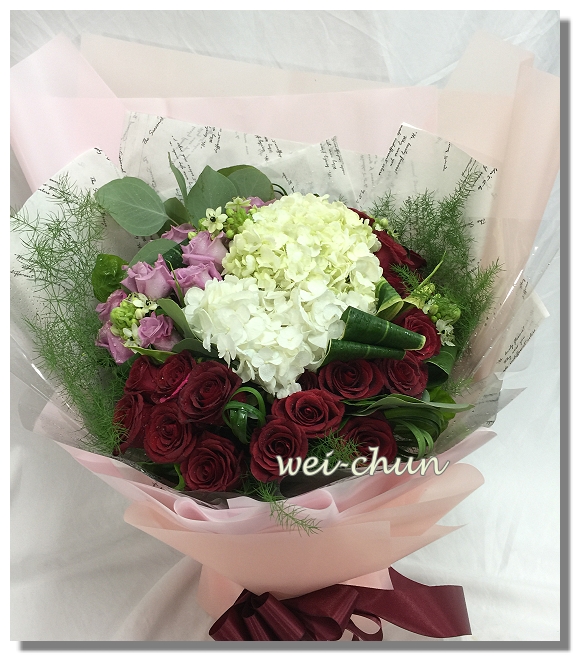 花材 : 繡球,玫瑰+葉材