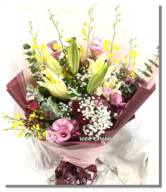 花材:百合+滿天星+文心蘭+洋桔梗+葉材